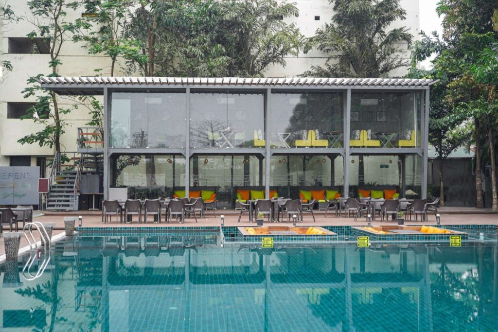 Poolside restaurant and hangout spaces.